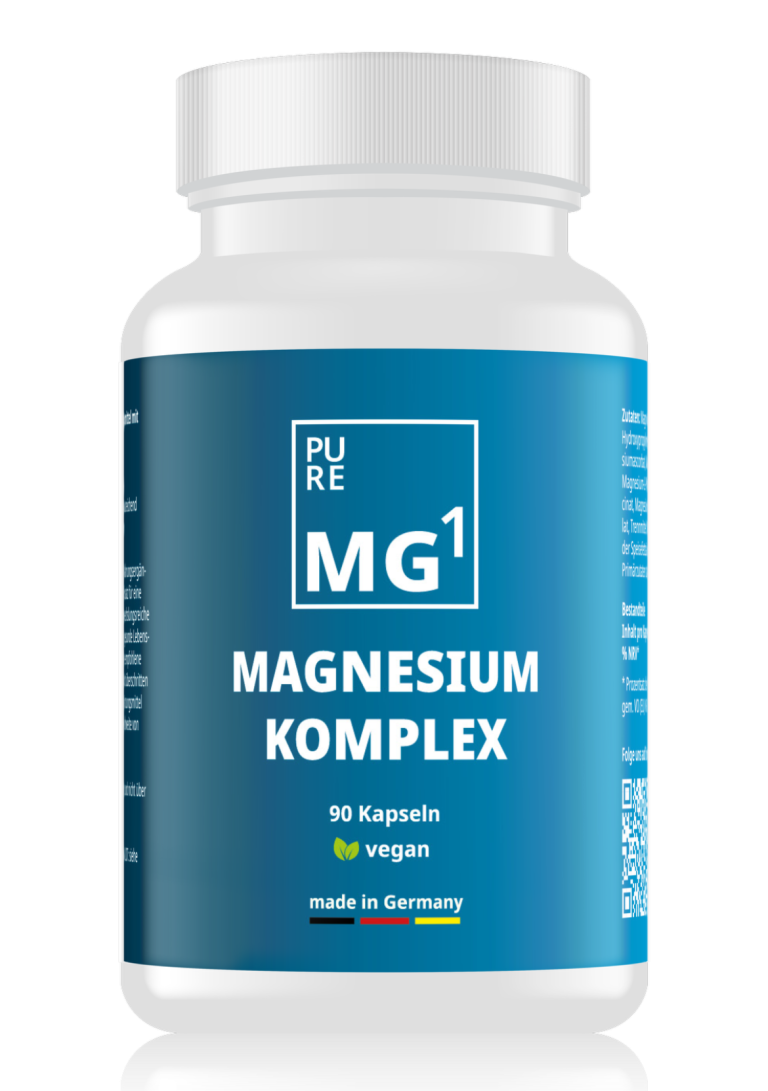 Magnesium gehört zu den wichtigsten Mineralien für unseren Körper – doch viele Menschen nehmen es nicht ausreichend auf. pureMG1 kombiniert sieben hoch bioverfügbare Magnesiumformen (Bisglycinat, Malat, Citrat, Taurat, L-Pidolat, Ascorbat, Oxid) zu einem einzigen, ausgewogenen Komplex. Unsere Formel unterstützt Muskelkraft & Regeneration, fördert gesunden Schlaf und hilft, den Elektrolyt-Haushalt zu stabilisieren – perfekt nach dem Training oder in stressigen Alltagssituationen.